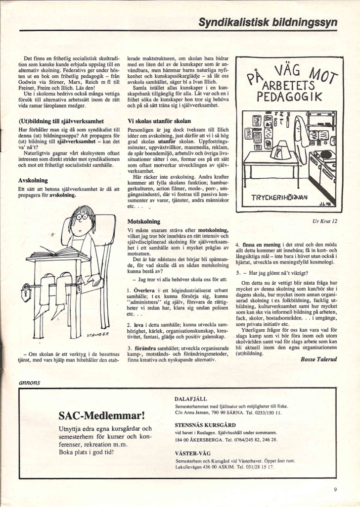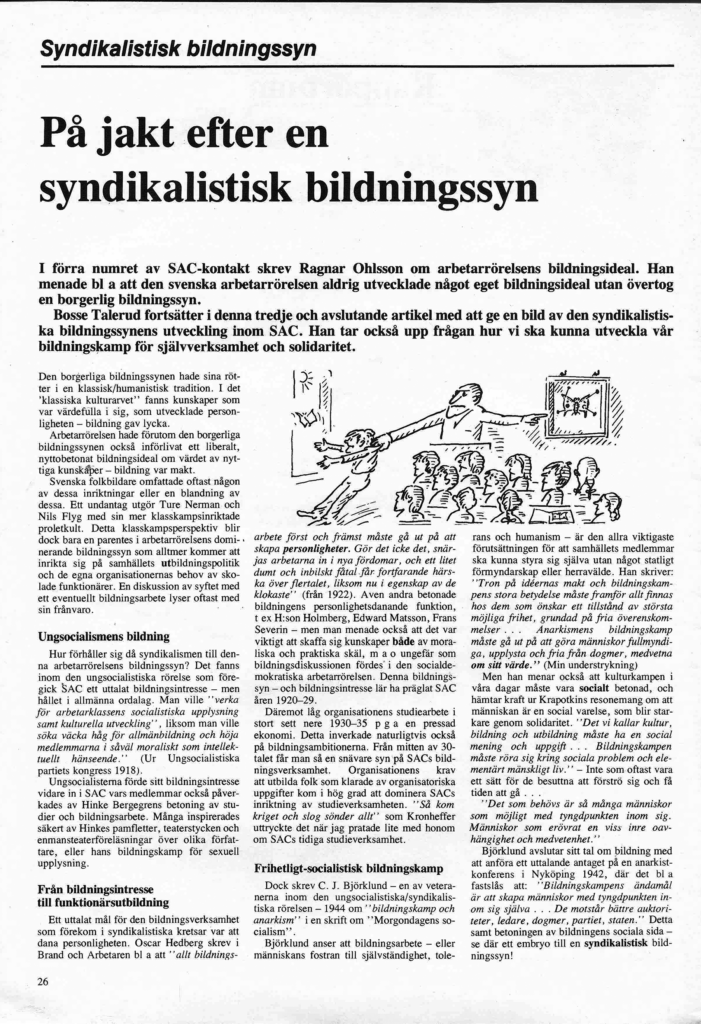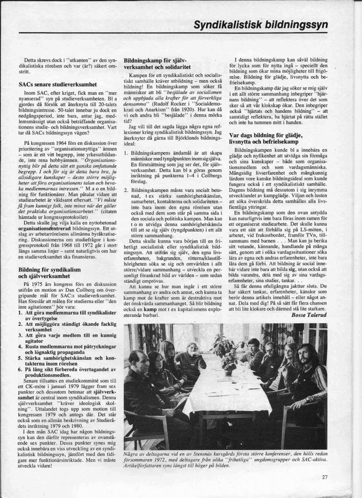 Bosse Talerud återkom i diskussionen med artikeln På jakt efter en syndikalistisk bildningssyn i SAC-Kontakt nr 8/1980: