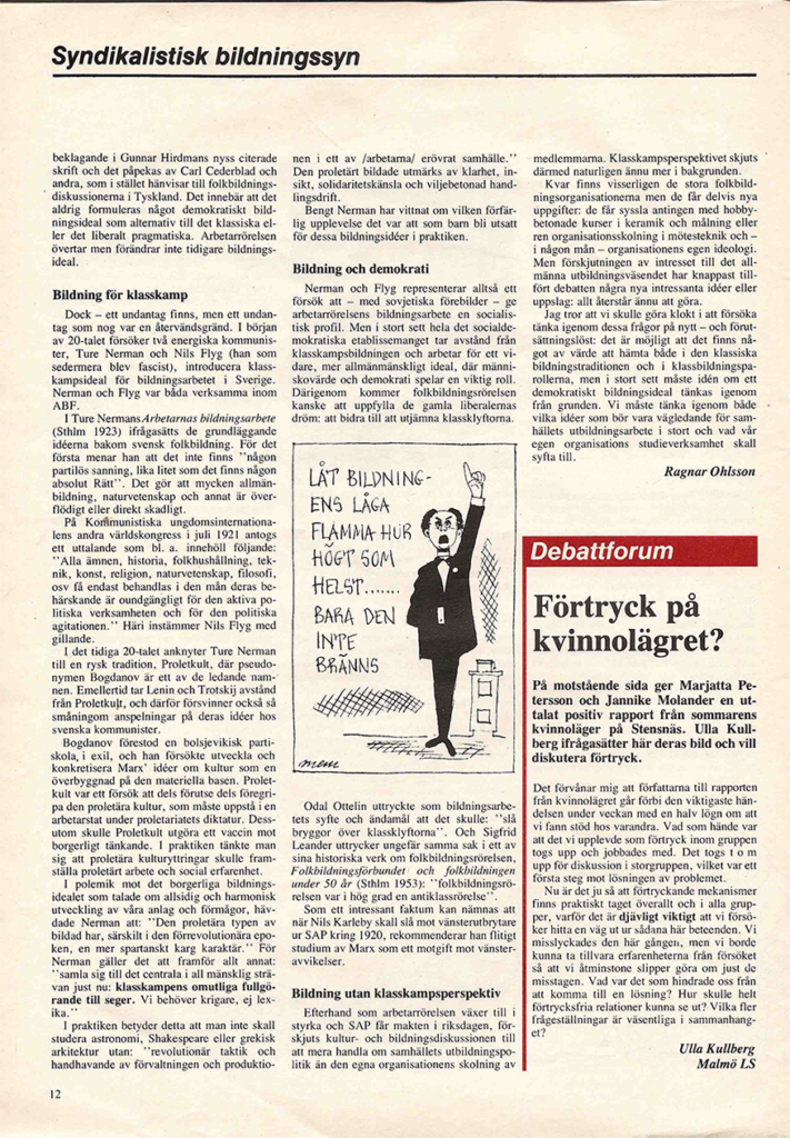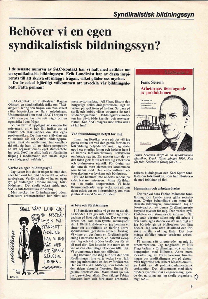 Erik Lundkvist avslutade diskussionen med artikeln Behöver vi en egen syndikalistisk bildningssyn? i SAC-Kontakt nr 9/1980: