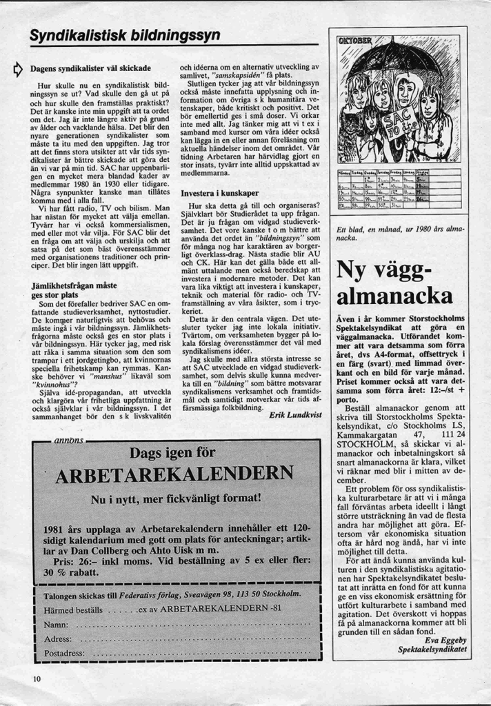 Debatt ur SAC Syndikalisternas dåvarande medlemstidning SAC-Kontakt från 1980