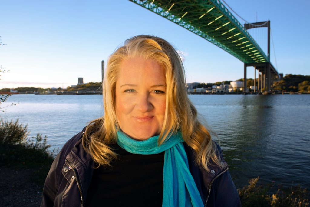 Författarfoto på Karin Hallberg framför Älvsborgsbron: Mai Nestor